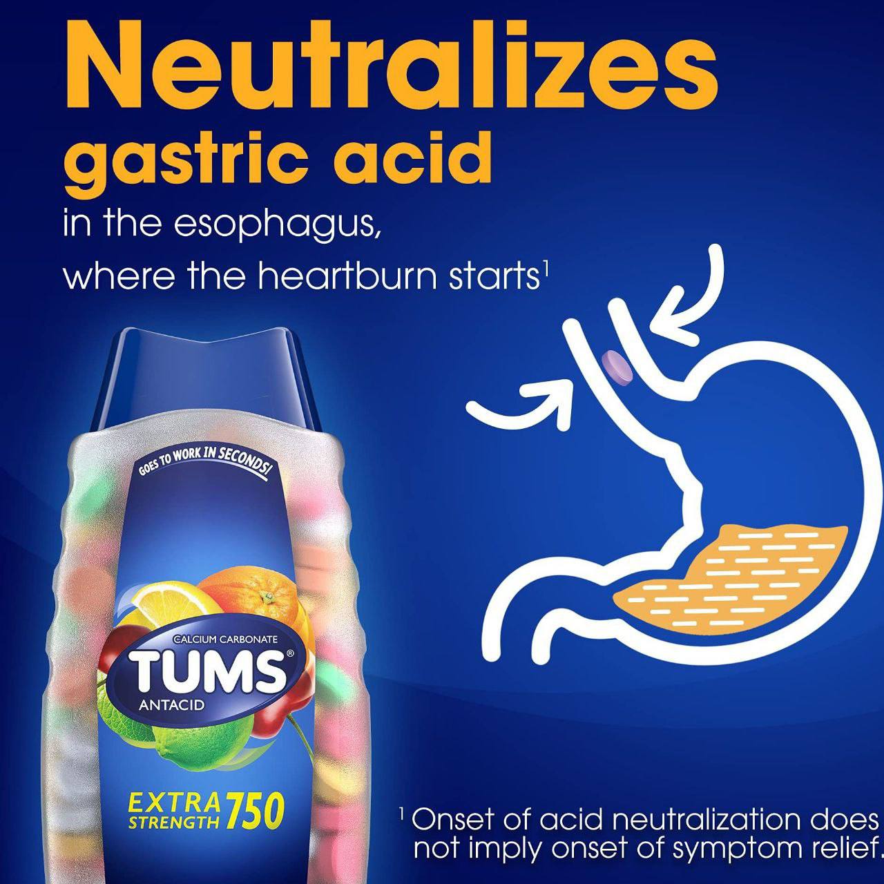قرص جویدنی تامز (Tums Extra ۷۵۰ mg) یک داروی ضداسید فوری و مؤثر برای درمان سوزش معده، ترش کردن و رفلاکس اسید است.