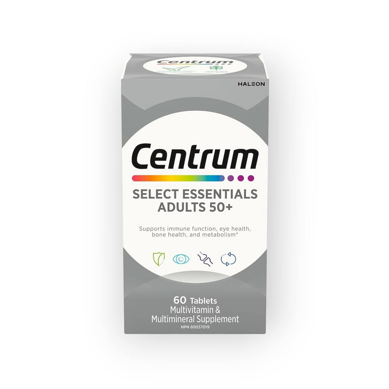 مولتی ویتامین سنتروم بزرگسالان بالای ۵۰ سال Centrum Select Essentials مکملی کامل و متعادل از برند معتبر Pfizer است که به‌طور ویژه برای خانم‌ها و آقایان بالای ۵۰ سال طراحی شده است.