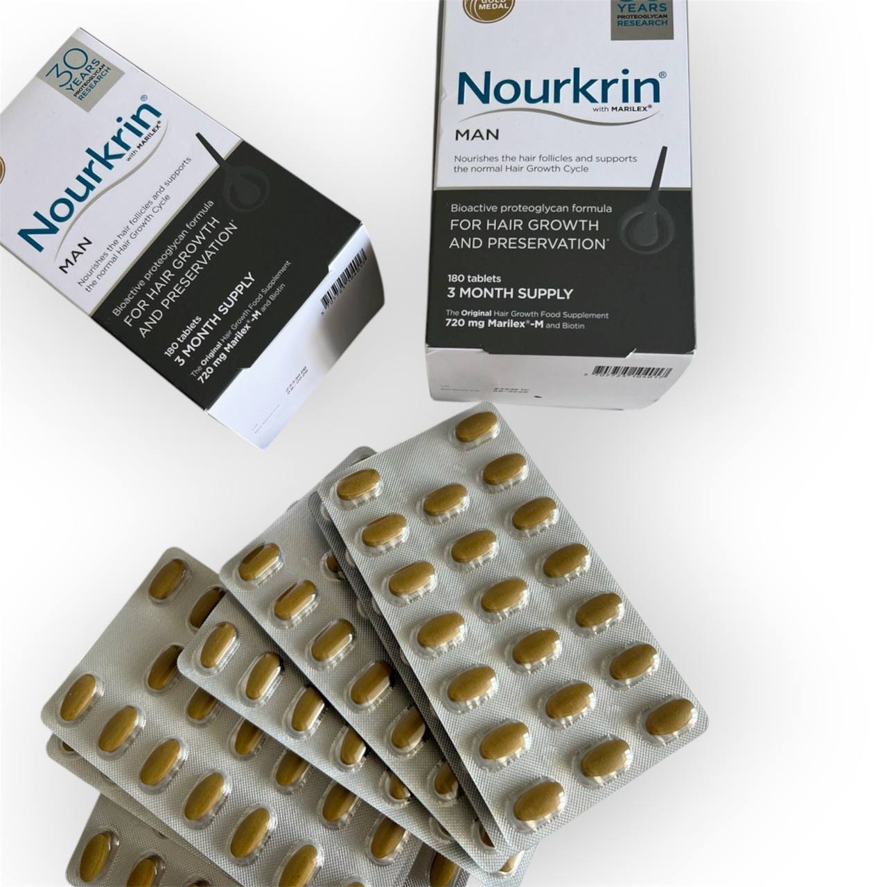 قرص نورکرین آقایان فارما مدیکو با ترکیبی از بیوتین، ویتامینهای گروه B، روی (Zinc)، سیلیکا و Marilex®، سلامت فولیکولهای مو را بهبود میبخشد و رشد موها را تقویت میکند.