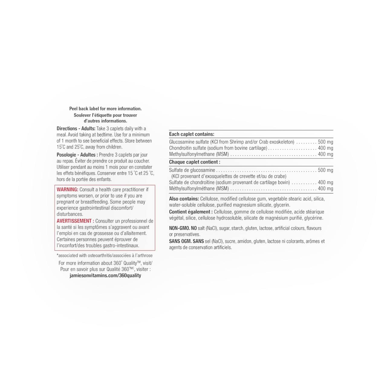 Jamieson Glucosamine + Chondroitin + MSM – 120 Capsules